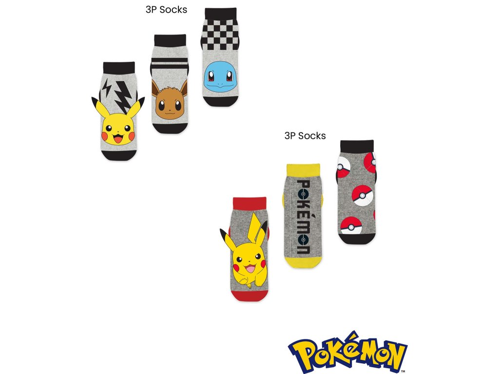 3-pack licencovaných dětských ponožek s motivy Pokémonů – Pikachu, Eevee a Squirtle. Ideální délka do tenisek.